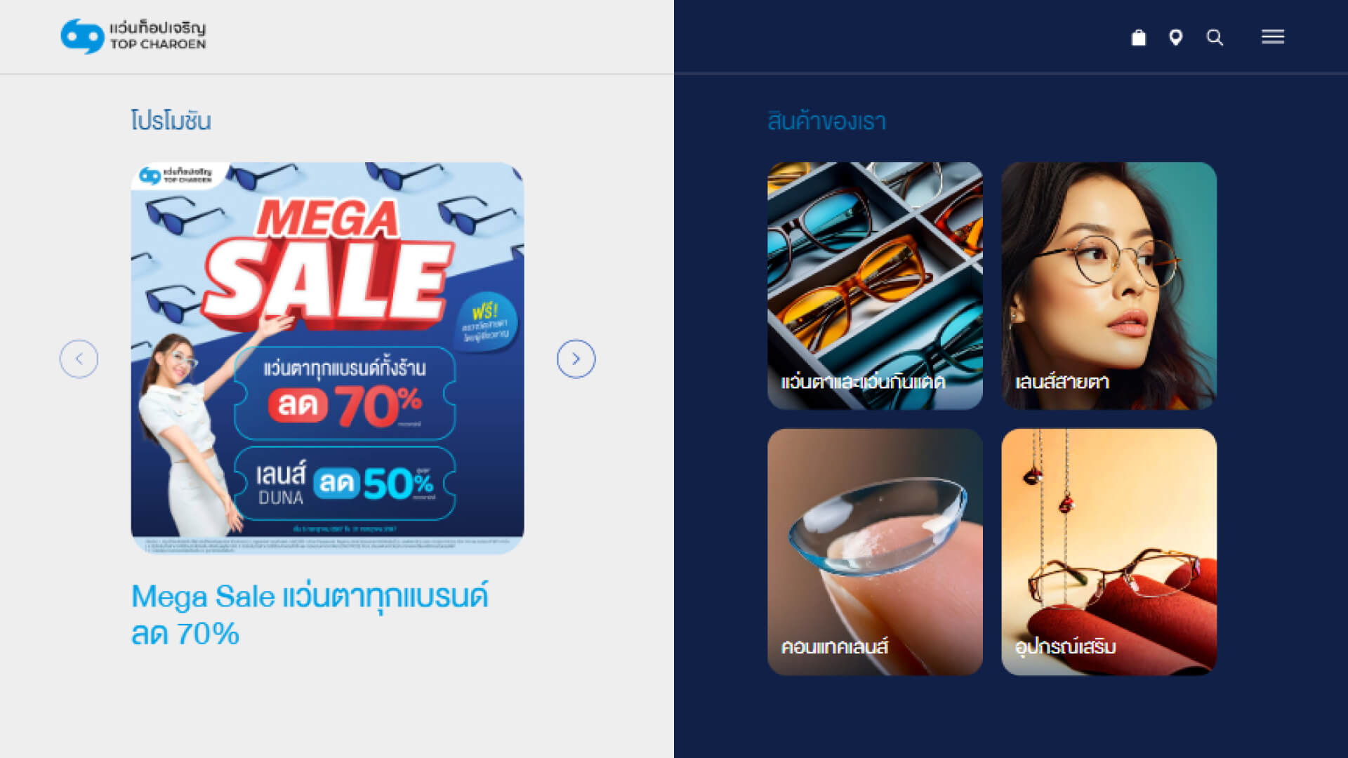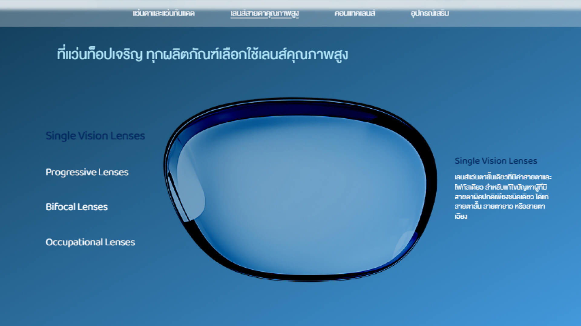 This was a corporate website for Top Charoen, a major eyewear business in Thailand.