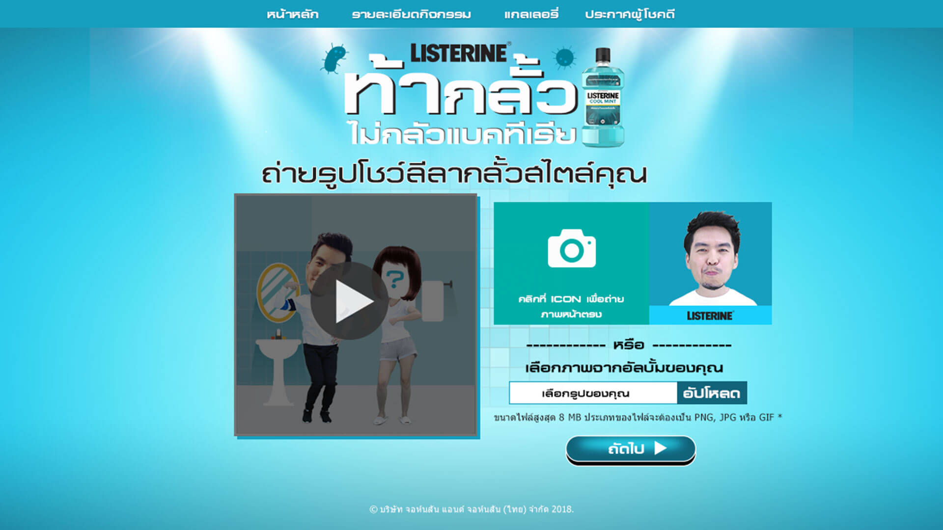 This website was part of a marketing campaign promoting the mouthwash product Listerine, where users could insert their faces into a short media video for the campaign.
